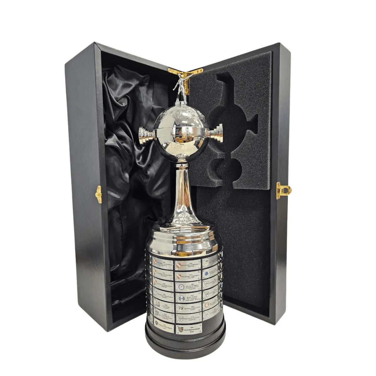 Materiais - madeira e liga metálica (taça) madeira revestida de couro sintético (caixa) Produto oficial licenciado pela conmebol libertadores